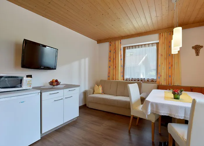 Im Apartment gibt es eine Küche mit einem Wasserkocher, den Kühlschränken und Küchenutensilien. Das Ferienwohnung Landhaus Stefanie liegt ca. 5 Minuten Gehweg von der Bushaltestelle Schrofenblick entfernt. Zum Ferienwohnung Landhaus Stefanie gehört auch eine Terrasse.